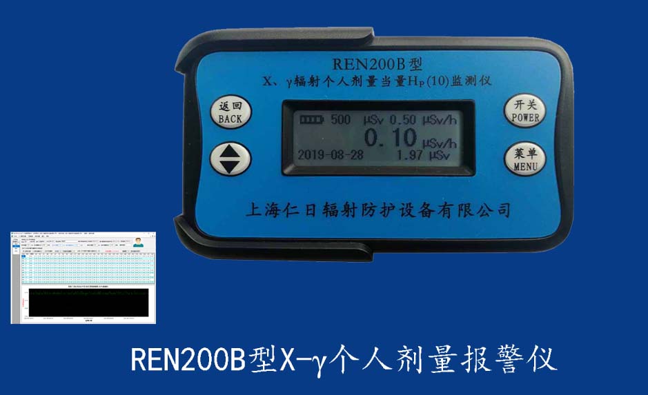 REN200A 個(gè)人報(bào)警儀REN200A型X、γ輻射個(gè)人劑量當(dāng)量HP(10)監(jiān)測儀(簡稱:個(gè)人劑量報(bào)警儀)內(nèi)置高靈敏度蓋格計(jì)數(shù)管為探測器,主要用來監(jiān)測各種放射性工作場所的X、γ以及硬β射線的輻射,具有響應(yīng)快,測量范圍寬的特點(diǎn)。能顯示工作場所的劑量當(dāng)量率和累積劑量,更換電池時(shí),日期及累積數(shù)據(jù)能永久保存。可選配RenRiPersonal個(gè)人劑量管理軟件,該軟件可存儲多個(gè)人的歷史數(shù)據(jù),能記錄日累積、月累積、年累積、輻照時(shí)長、計(jì)算平均劑量率、扣除或不扣除本底輻射,且以文字和圖譜的方式展現(xiàn)數(shù)據(jù)。廣泛應(yīng)用于核電站、加速器、鋼鐵、化工、同位素應(yīng)用、工業(yè)X、γ無損探傷、放射醫(yī)療、鈷源治療、γ輻照、放射性實(shí)驗(yàn)室、核設(shè)施周圍環(huán)境監(jiān)測等領(lǐng)域中的工作人員進(jìn)行個(gè)人安全